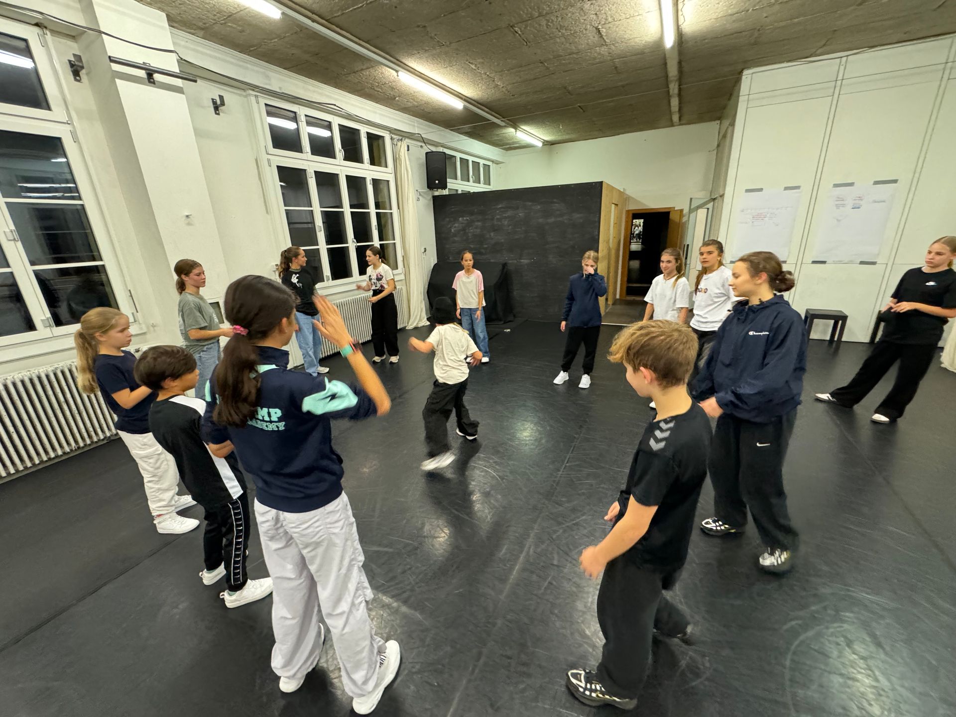 Vom 30. Oktober bis 3. November 2024 fand das «Kids Camp Switzerland» im Residenzzentrum tanz+ in Baden AG statt. 12 Tänzer:innen von movetoohot aus Deutschland nahmen daran teil. Unter der Leitung von Patrick Grigo aka Parrish und der Co-Trainerin Sophie Prehofer aka SoFly wurde intensiv in den Studios des Residenzzentrums auf dem Oederlin Areal trainiert.