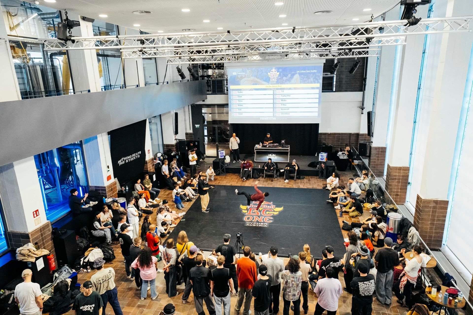 Durch den Tag führte Host Redchild, der mit seiner Energie die Menge mitriss, während DJ One Up aus Frankreich mit seinen Beats für die perfekte musikalische Begleitung sorgte. Die Performances wurden von einer hochkarätigen Jury bewertet, bestehend aus Menno, dem vierfachen Red Bull BC One World Final Gewinner aus den Niederlanden, Killa Kim von den Rocking Chicks aus der Ukraine und Gizmo von den Def Style Rockers und The Tribe aus Deutschland. Sie beobachteten genau, bewerteten präzise und gaben der nächsten Generation von Tänzer:innen wertvolles Feedback.